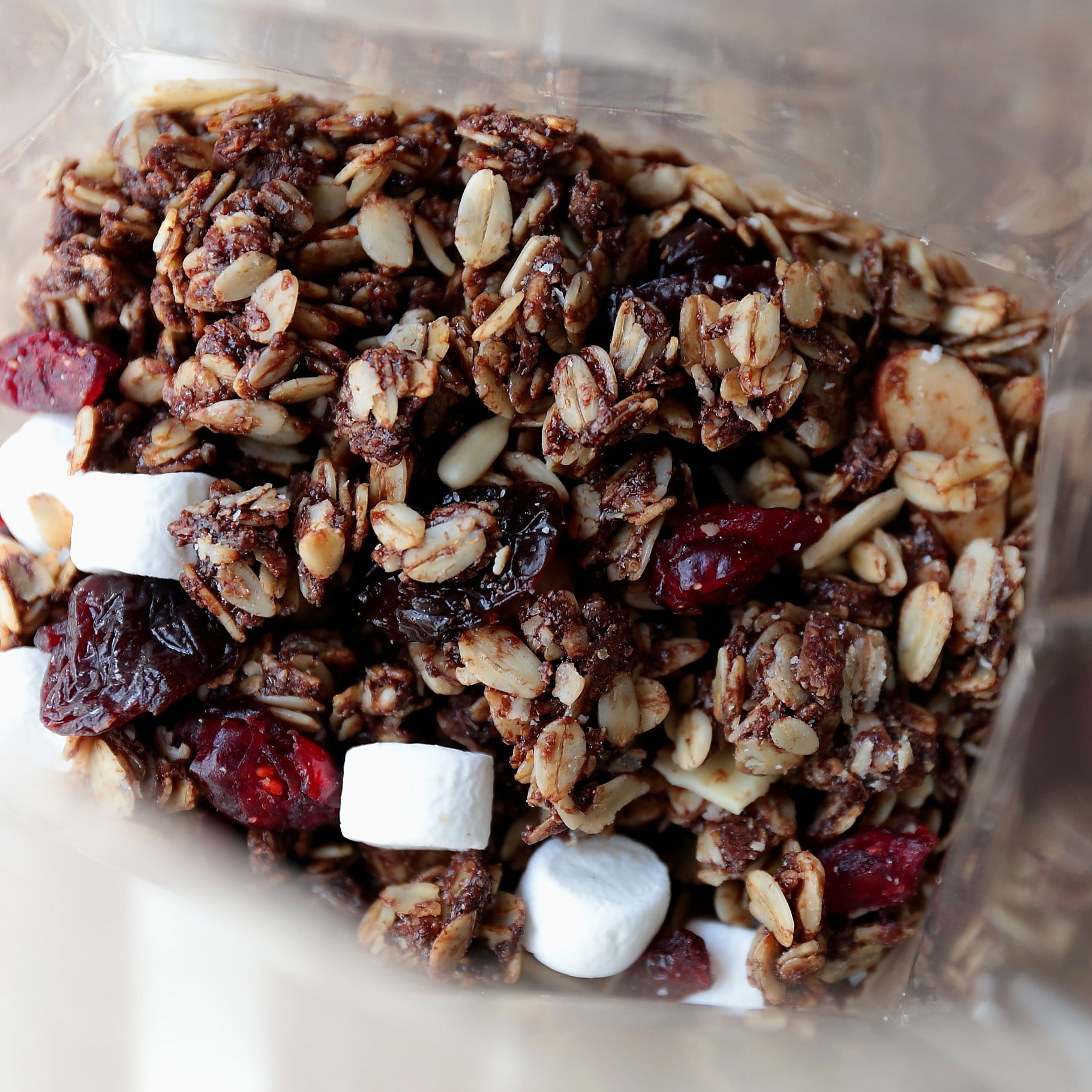 甘酸っぱくてフルーティー、アメリカン・ドライチェリーとココア味に焼き上げたグラノラを合わせました。